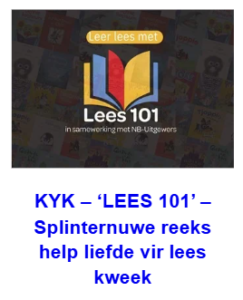 Hierdie week wil ons ‘n splinternuwe leesprogram (Lees101) wat op Netwerk24 beskikbaar is, bekendstel. Hierdie program fokus daarop om ouers/voogde advies te gee oor lees en waarom lees belangrik is. Dit bestaan uit 12 episodes. Ons skool is so bevoorreg om hierdie bemarkingsblootstelling te ontvang aangesien die geletterdheidsentrum (biblioteek) en Zen Den as aanbiedingsruimte gebruik is. Ongelukkig sal slegs lede wat ingeteken is, toegang tot hierdie platform ontvang.