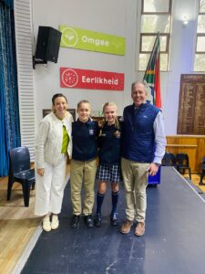 Dit is dan my eer en voorreg om amptelik in die nuusbrief die Hoofseun en Hoofdogter vir 2025, wat op 20 Junie aangewys is — naamlik Nils le Roux en Katryn Silvis — bekend te maak en geluk te wens. My beste wense vergesel hulle met hul nuwe rol as die hoofleerderleiers by ons skool. Mag dit vir hulle ‘n groot eer en ‘n verrykende ervaring wees. Katryn volg in die spore van haar broer, Jan-Willem, wat gedurende 2023 ons hoofseun was. Ons is baie trots op Nils en Katryn!