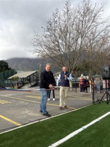 Daar was groot opwinding op Vrydag, 01 Augustus met die langverwagte inwyding van ons nuwe kunsgrasveld agter by die skool. Ons leerders kon nie meer wag om die ‘gevoel’ van die kunsgras te ervaar nie, en ons het op Vrydag net voor eerste pouse al die leerders op die kunsgrasveld laat sit, terwyl ons vir Gerhard Conradie snr. (borg van al die grond- en siviele werk) gevra het om simbolies vir ons die lint te knip om amptelik die pragtige fasiliteit te open. Ons is vir Gerhard baie dankbaar vir al sy borgskappe oor die afgelope jare om die fasiliteite by die skool op te gradeer. Die eerste hokkiewedstryd (o/9 seuns en dogters) het ook op Vrydag net na skool teen Laerskole Robertson en Sunningdale plaasgevind. Ek glo julle is net so trots soos ek op die nuwe toevoeging om sport verder by ons skool te ontwikkel. Die pragtige spasie sal dus vir mini-hokkie en -rugby sowel as netbal aangewend word, terwyl daar voor skool en gedurende pouses op gespeel word.