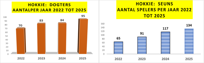 Soos julle kan sien, was daar sedert 2022 ‘n groot toename per jaar in die aantal leerders wat aan hokkie deelgeneem het, veral die seuns (106%). Ek glo ook dat die koms van die kunsgrasveld nog meer leerders sal trek om aan hokkie deel te neem.