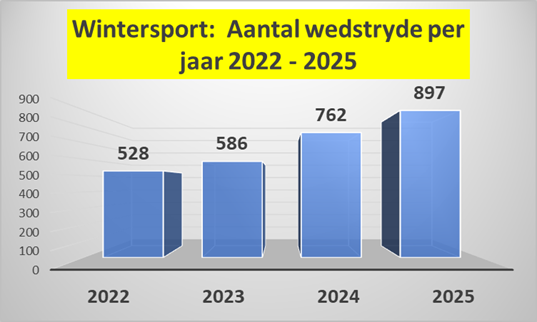 Ons werk sedert 2022 baie hard om die sport by ons skool te verbeter en meer geleenthede vir ons leerders te skep. Graag deel ek met julle ‘n bietjie wintersport-statistieke (hokkie, netbal & rugby) om die vooruitgang en ontwikkeling van sport by ons skool sedert 2022 te bevestig. Ons leerders het gedurende die 2025-wintersportseisoen (Kwartale 2 en 3) aan 897 wedstryde deelgeneem; dit sluit natuurlik liga-wedstryde, sportdae en toernooie in. Ek dink dit is merkwaardig en ‘n welverdiende kompliment aan die sportkantoor onder leiding van ons Hoof van Sport, mnr. Leon, wat weer vanjaar seker gemaak het dat ons Jannies voldoende wedstrydblootstelling en goeie afrigting ontvang. Sien gerus hier onder die grafiese illustrasie van die aantal wintersportwedstryde per jaar wat vanaf 2022 tot 2025 plaasgevind het. Daar was sedert 2022 tot 2025 ‘n toename van 69,8% in die aantal wintersportwedstryde waaraan ons deelgeneem het.