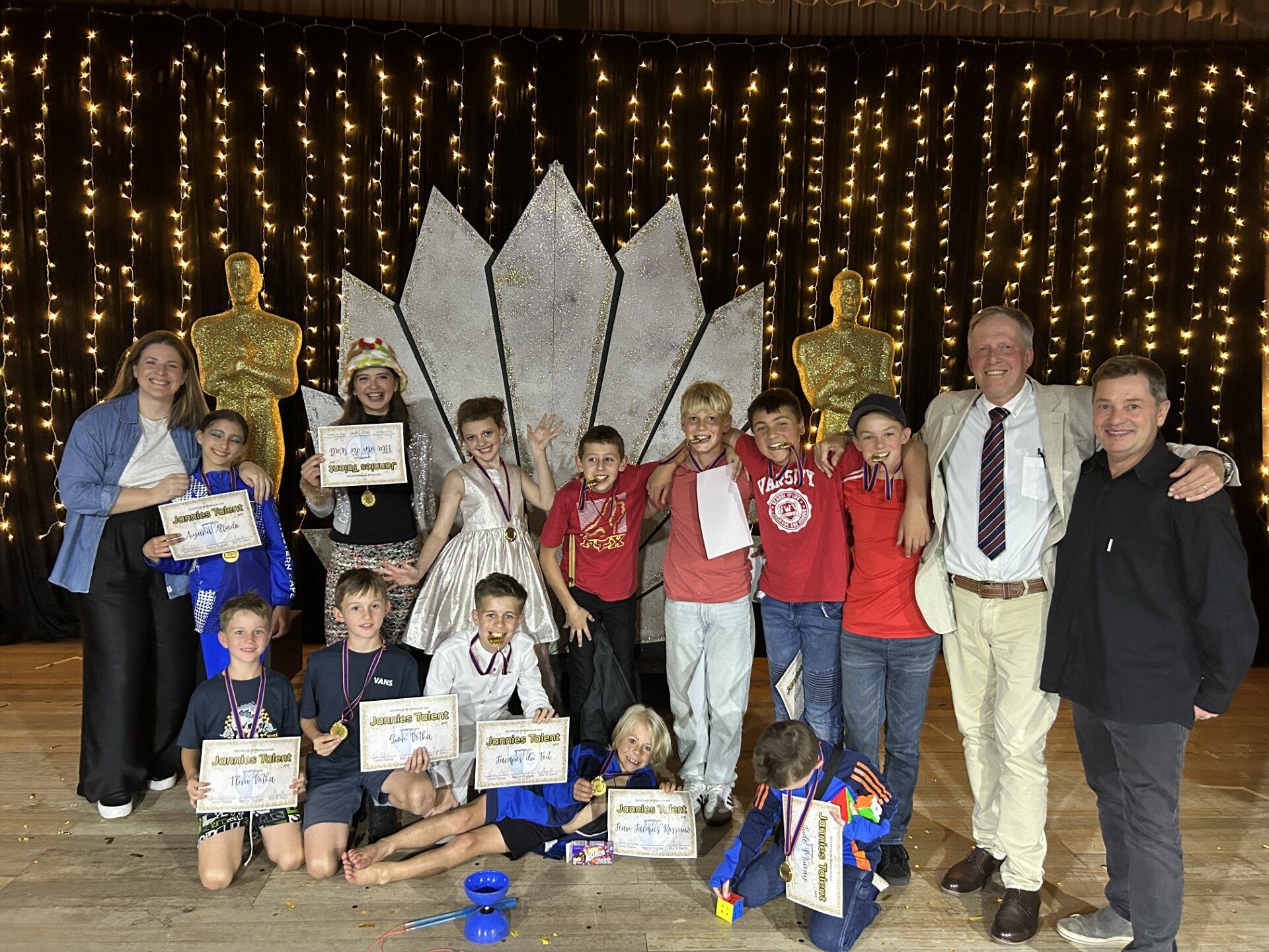 Ons jaarlikse Jannies Talent-aand het op Donderdag, 25 September, in die saal plaasgevind. Die saal en voorportaal was uiters stylvol voorberei om die aand baie spesiaal te maak. Uitnemendheid het weer soos ’n paal bo water uitgestaan en al die kaartjies is vir die gewilde aand uitverkoop. Drie-en-dertig talentvolle Jannies wat na afloop van ’n behoorlike proses van oudisies gekwalifiseer het, het die aand deelgeneem. Die gehoor was verstom met die manjifieke optredes wat gewissel het tussen sang, musiekgroepe, ballet, dans, speel van moeilike musiekinstrumente, Rubik’s ‘’cube’’ en diabola. Die selfvertroue van die deelnemers was indrukwekkend en ongelooflik om te sien hoe hulle hul verhoogpersoonlikheid voor ’n groot gehoor uitgeleef het – Bravo aan al die deelnemers! Wat my betref, was al die deelnemers wenners. Baie geluk aan die volgende Jannies wat medaljes vir hul puik optredes ontvang het: