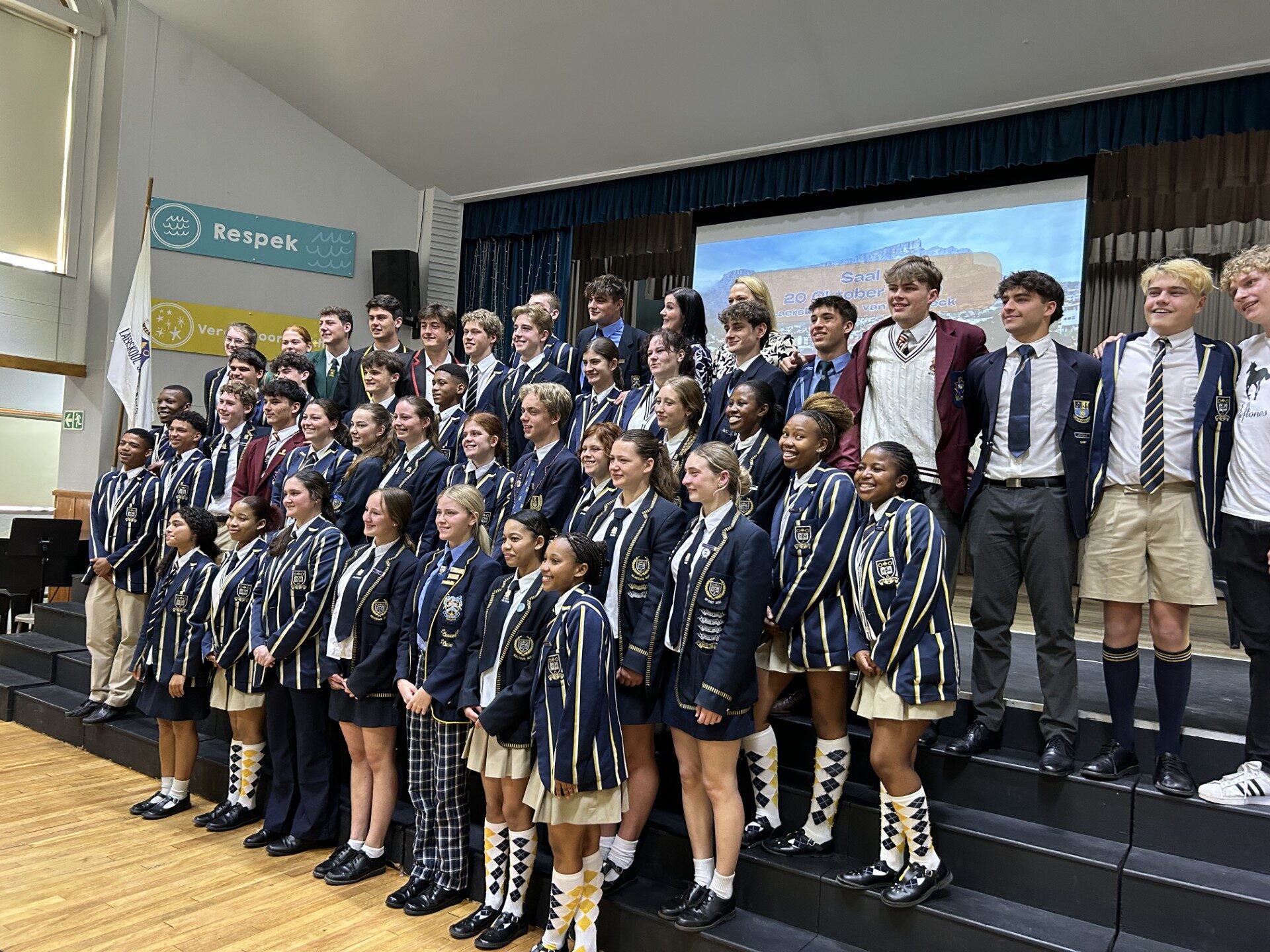 Ons nooi nie net Hoërskool Jan van Riebeeck se matrikulante wat by ons in die laerskool was nie, maar alle matrikulante wat in graad 7 by ons was. Die 2025-matrikulante moes in hul graad 7-jaar met Covid-uitdagings oor die weg kom, en hulle het heelwat van hul graad 7-skooljaar gemis as gevolg van al die drakoniese inperkings. Ons was baie bevoorreg dat die 2020 Hoofdogter en Hoofseun, Emma Bartel en Cayle Stoltz, ’n kort toespraak kon lewer. Baie dankie ook aan Jana Brink, tans die Hoofdogter van Hoërskool Milnerton, wat ook ’n baie inspirerende toespraak gelewer het.