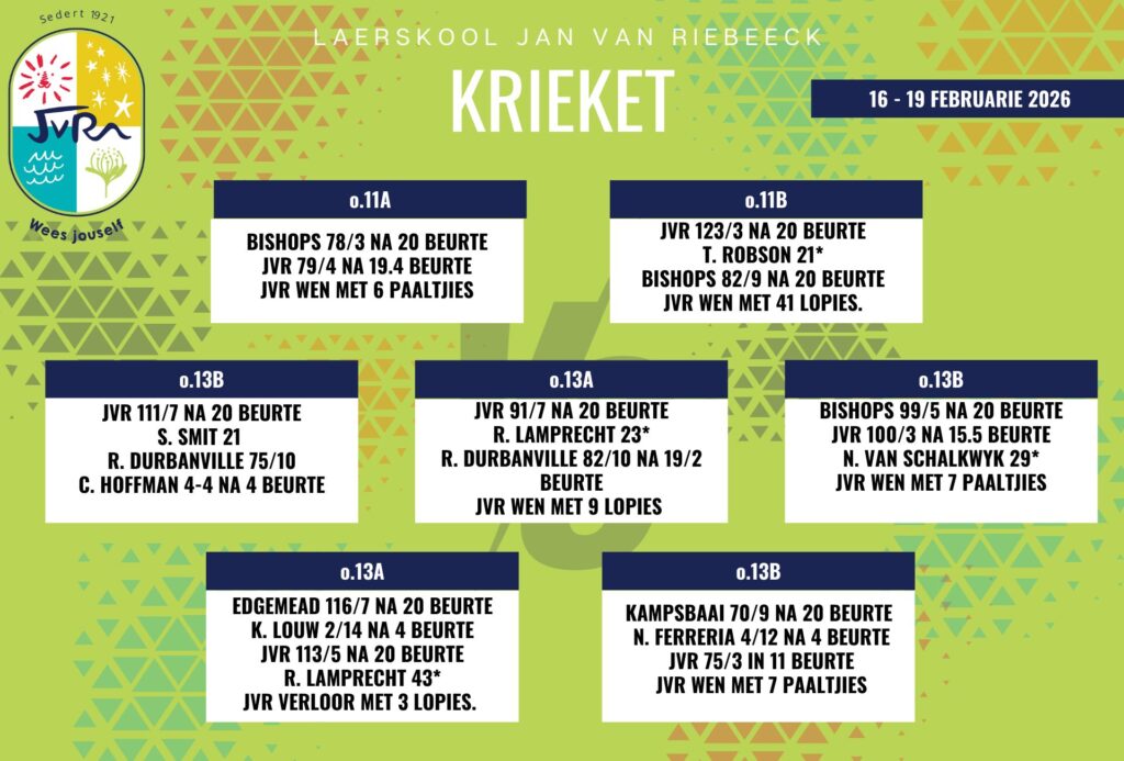 Krieketuitslae: 12-19 Februarie 2026 20 Feb, 2026 | Krieket, Nuus, Sport, Sport, Sportuitslae Hier volg die week se krieketuitslae: