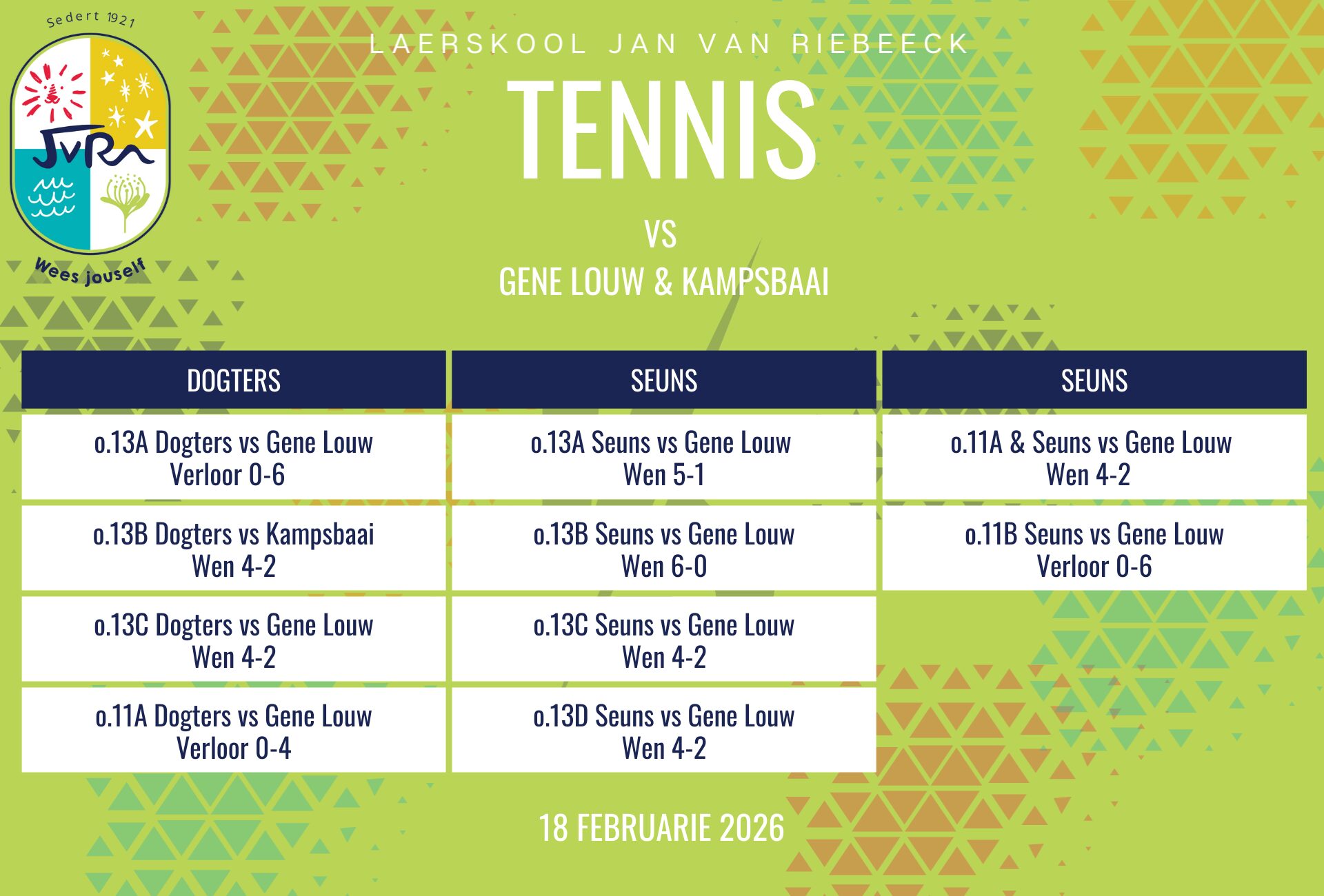 Tennisuitslae – 18 Februarie 2026 20 Feb, 2026 | Nuus, Sport, Sport, Sportuitslae, Tennis Hier volg die week se tennisuitslae: