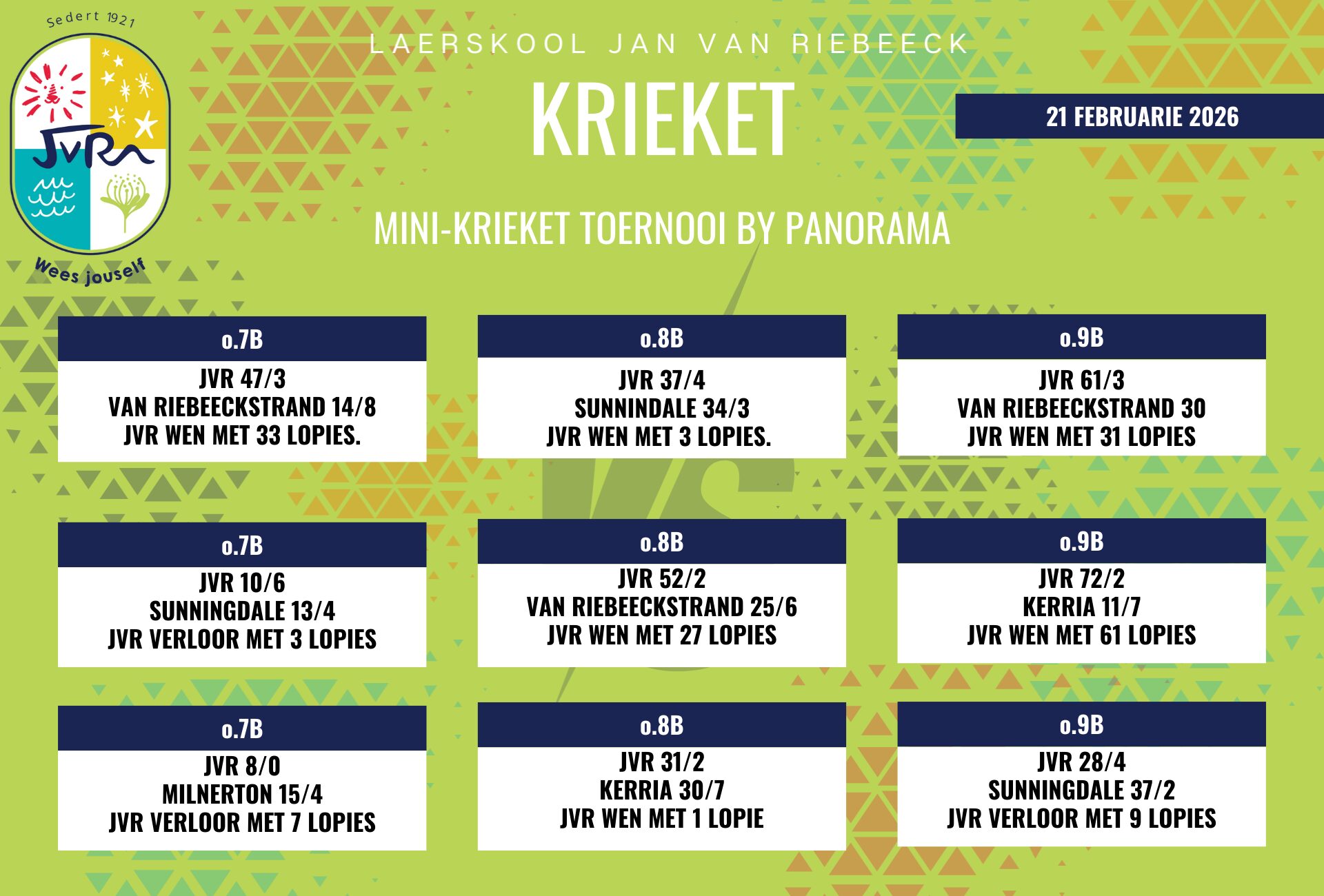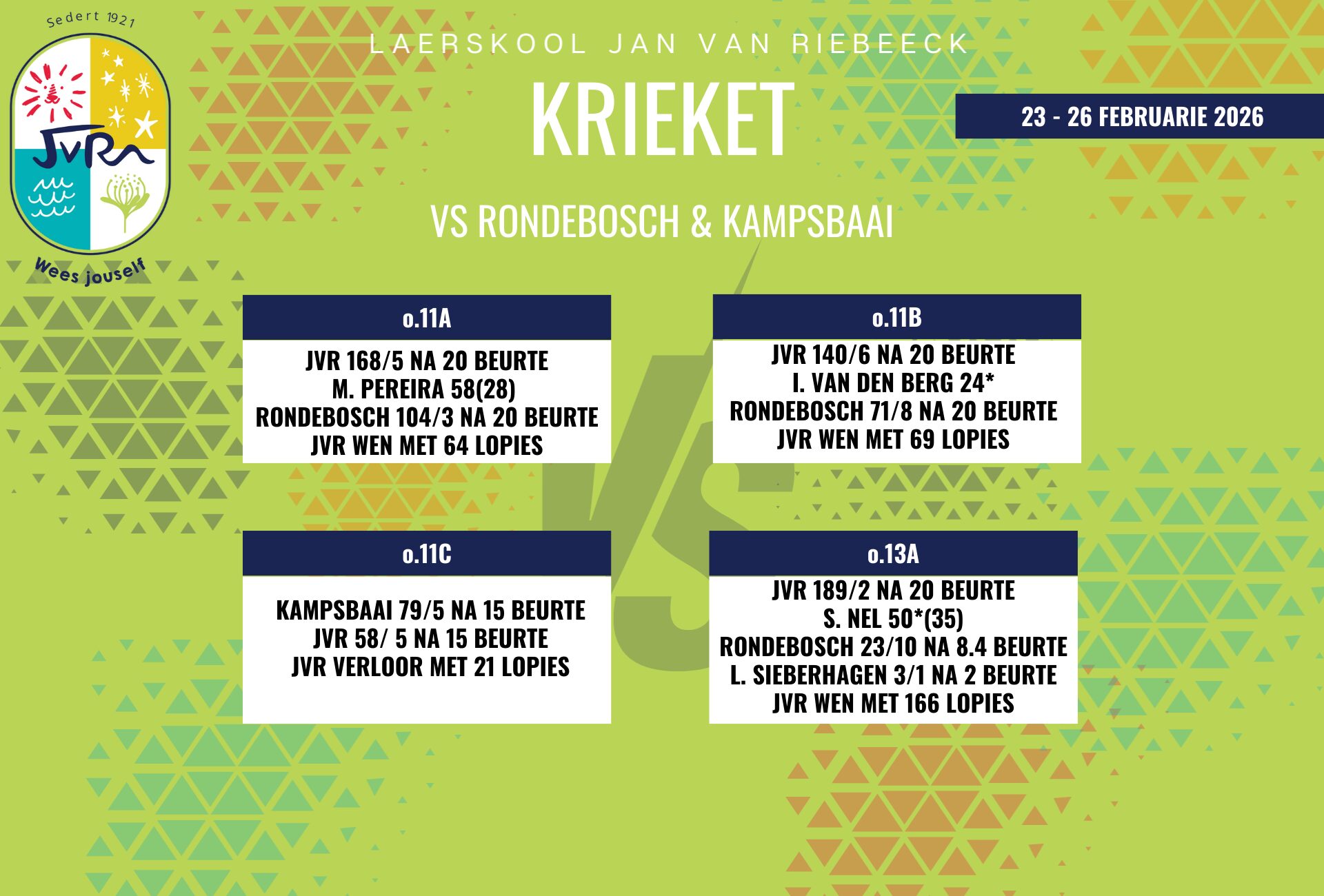 Krieketuitslae: 21-26 Februarie 2026 27 Feb, 2026 | Krieket, Nuus, Sport, Sport, Sportuitslae Hier volg die week se krieketuitslae: